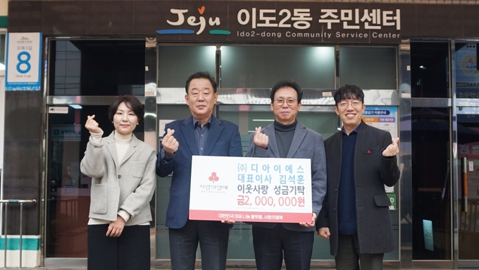 ㈜디아이에스 김석훈 대표이사는 최근 이도2동 주민센터(동장 김태석)에서 도내 어려운 이웃들을 돕기 위한 이웃사랑 성금 200만 원을 제주사회복지공동모금회(회장 강지언)에 기탁했다.