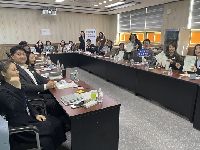 서귀포시교육지원청(교육장 김지혜)은 지난 11일 제2회의실에서 교육장과 교육‧행정지원국장, 각 과장, 내부 실무자 협의회 위원 등 22명이 참석한 가운데‘학생맞춤통합지원 정책 이해 연수’를 실시했다.