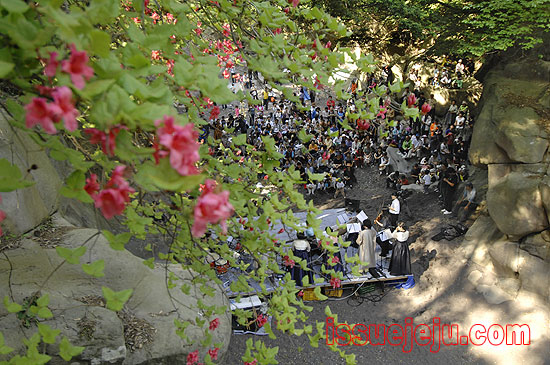 9일 오후 제주시 오라동 소재 방선문계곡에서 음악회가 펼쳐지고 있다. |