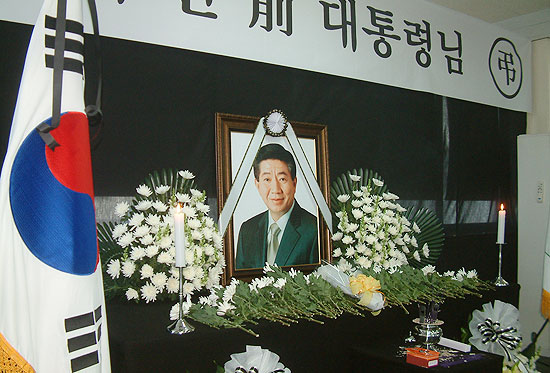 분향소를 찾은 시민들이 헌화와 분향을 하며, 전직 대통령의 서거를 안타까워 하고 있다. ⓒ 김정호 기자 |