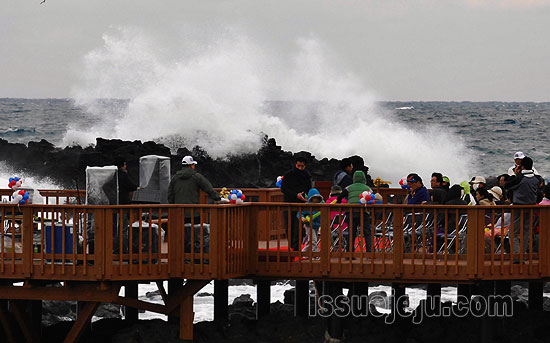 15일 높은 파도가 일고 있는 가운데 '제1회 용담해안도로 길거리 페스티벌'이 제주시 용담2동 어영마을 해안가 일원에서 열렸다. |