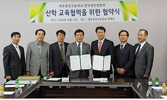 제주중앙고등학교(교장 부재호)는 지난 13일 학교 연혁실에서 한국생산성본부와 교육협약식을 체결했다.