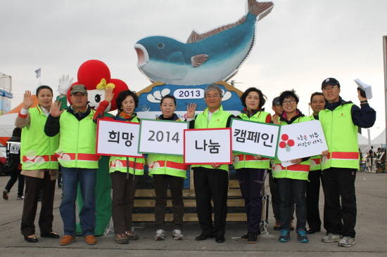 이날 활동에는 착한가게나눔봉사단 15명이 참여하여 행사장을 찾은 도민들에게 사랑의열매 뱃지를 전하고 오는 20일부터 시작되는 '희망2014나눔캠페인' 참여를 독려했다.