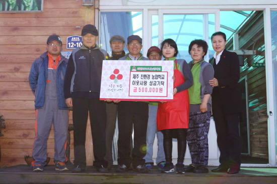이번 성금은 제주친환경농업학교 회원들이 십시일반 모아 기탁한 것으로 도내 저소득 가정의 생활 안정을 위한 사업비에 지원된다.