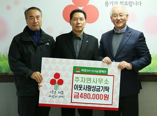 이날 기탁된 성금은 지난 2014년 추자면사무소가 클린 제주만들기 등 5개 분야에서 우수부서로 선정되어 받은 시상금으로, 도내 경제적으로 어려운 저소득 가구에 전달 될 예정이다.
