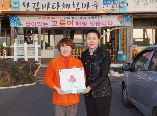 제주시 한림읍에 위치한 한림바다체험마을(대표 홍권기)은 최근 제주사회복지공동모금회(회장 고승화)가 연중 진행하는 착한가게 캠페인에 동참하고 현판 전달식을 가졌다.