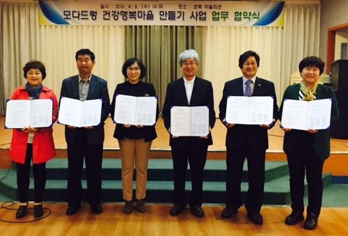 이번 협약의 주요 내용은 △마을 요구도 및 현황조사 협조 △ 건강생활실천 및 만성질환예방프로그램 운영에 대한 협조 △ 흡연자 지원을 위한 이동 금연클리닉 운영 협조 △ 건강증진사업 홍보 협조 △ 기타 상호협의에 따른 사항 등 모다드렁 건강 행복마을 만들기사업의 성공을 위하여 상호간의 적극 협력하기로 했다.