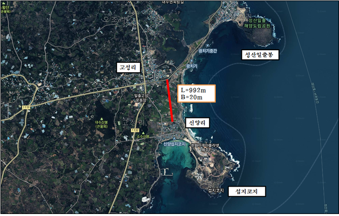 서귀포시는 신양리 입구 교차로에서 서성로까지 연결하는 섭지코지 진입로 확․포장공사(L=0.99km, B=20m)에 대하여 4월말부터 본격 착수한다.