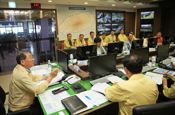 이날 회의는 여름철 기후특성분석과 기후전망 그리고 주요기상정책에 대하여 제주기상청 예보관이 발표가 있은 후 각실국별로 여름철 재난대비 대처상황 소관 사항을 보고하는 순으로 진행 되었다.