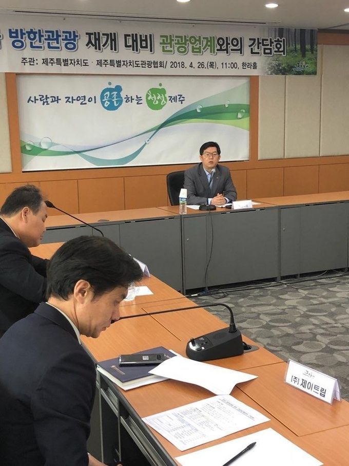 제주특별자치도와 제주자치도 관광협회는 최근 한중관계의 긍정적 변화 움직임에 따라, 중국 방한관광에 대비한 도내 관광업계와의 간담회를 26일 개최하였다.