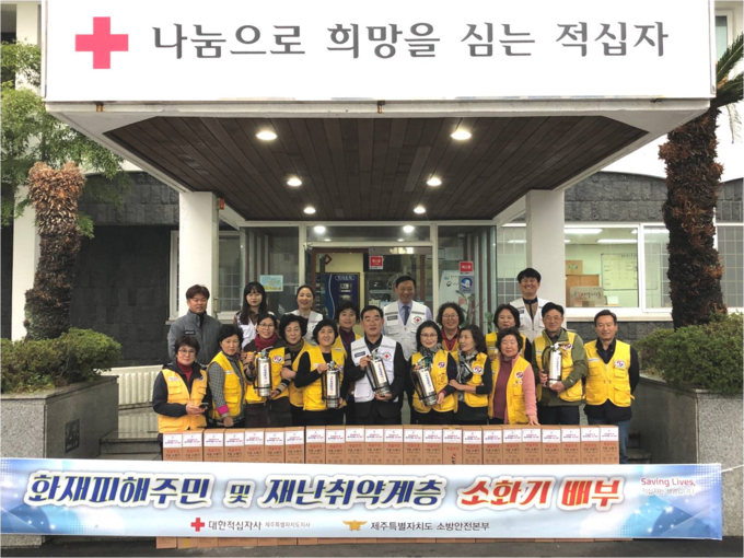 대한적십자사제주특별자치도지사(회장 오홍식)는 11월 27일 도내 화재피해가구 및 재난취약계층 가구에 안전문화 확산 과 화재예방을 위해 K급 소화기 100대를 전달하였다.