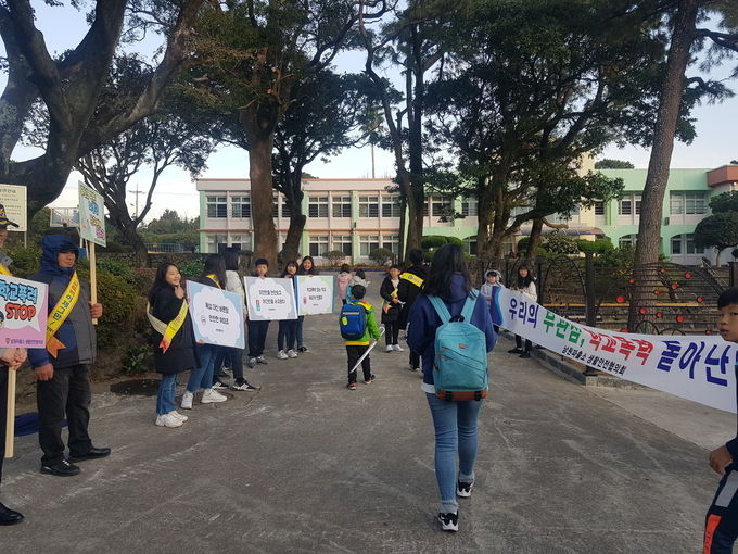 위미초등학교(교장 김혜자)에서는 지난 12월 10일(화) 오전 8시부터 8시 40분까지 위미초등학교 통학로에서 학교폭력추방 및 등굣길 안전 캠페인을 실시하였다.