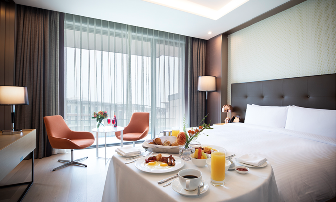 ‘스테이 인 스테이(Stay in Staycation) 패키지’는 메리어트의 안락한 객실에서 맞이하는 달콤한 1박과 제주의 신선함을 가득 담은 2인 조식 룸 서비스가 제공된다.