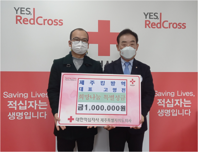 제주킹방역(대표 고영전)은 1월 5일 적십자사 회장실에서 대한적십자사제주특별자치도지사(회장 오홍식)에 소외된 이웃을 위한 희망나눔 특별성금을 100만원을 기탁했다.
