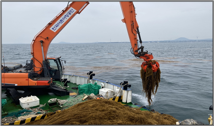제주시는 지난해 어촌어항공단(어장정화선) 및 해양환경공단(청항선)의 협조로 해상수거 1533톤을 수거한 바 있다.