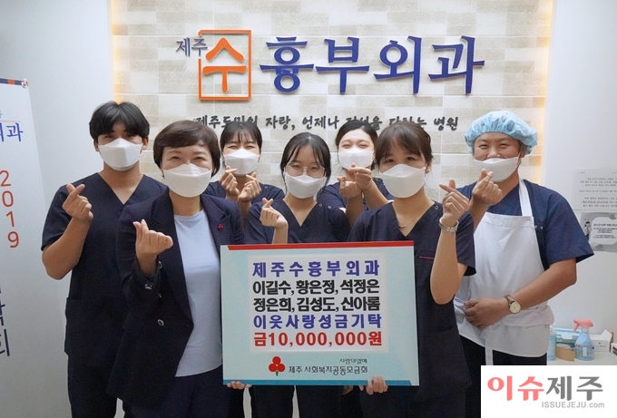 제주수흉부외과(원장 이길수)는 최근 도내 미혼모와 아동들을 위해 제주사회복지공동모금회(회장 김남식)에 성금 1,000만원을 기탁했다.