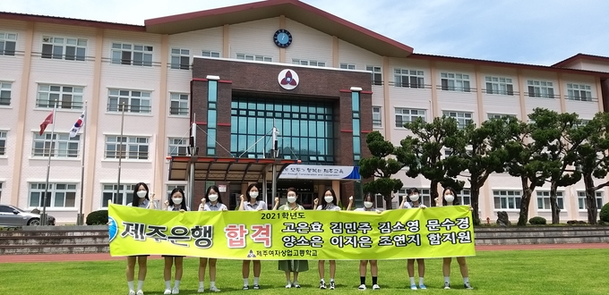 제주여자상업고등학교(교장 강명화) 3학년에 재학 중인 8명 학생이 2021년 제주도 내 특성화고 졸업예정자를 대상으로 하는 제주은행 RS직(입출금 창구업무, 고객대상 영업 및 금융서비스 등의 업무) 신입 공채에 최종 합격하였다. 최근 NH투자증권 전국공채 합격에 이어 현재 금융권 공채 합격 9명이 됐다.
