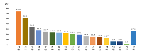 또한 중앙정부의 이전재원(지방교부세 + 국고보조금, 2020년 결산기준)은 2.5% 증가에 그쳐, 전국 평균증가율(27.2%)에도 크게 못 미치는 최하위 수준으로 기록됐다.