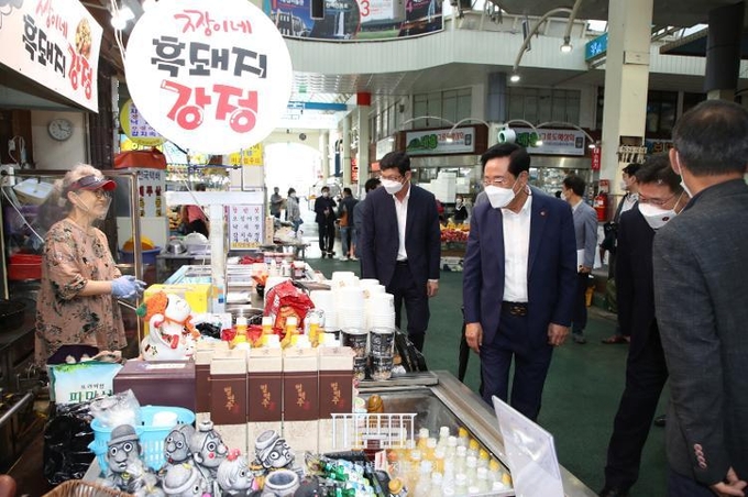 좌남수 의장 등 도의회 의장단, 전통시장 방문