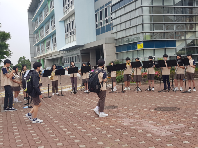 제주서중학교(교장 고성무)는 6월 17일 아침 8시부터 30분동안 등굣길 학생과 교직원이 참가한 가운데 학교 등교를 환영하고 행복한 학교생활을 응원하는 아름다운 음악회를 열었다.