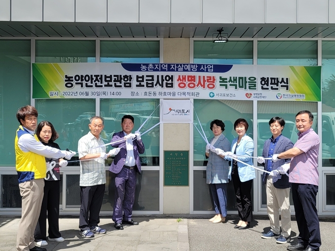 서귀포보건소(소장 오인순)는 30일 하효마을 다목적회관에서 농촌지역 음독자살 예방을 위한 ‘2022년 생명사랑 녹색마을 현판식’을 개최했다.