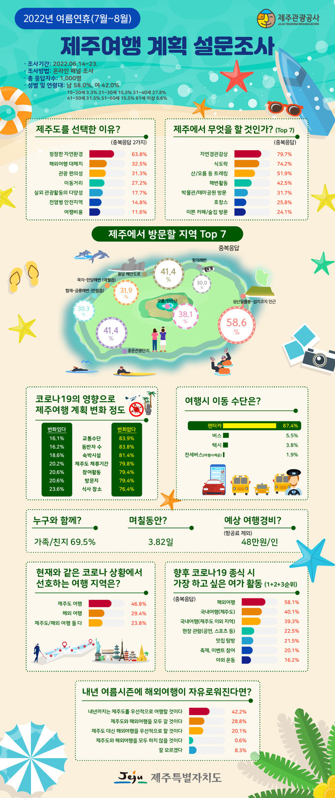 제주특별자치도와 제주관광공사(사장 고은숙)는 ‘2022년 여름시즌 제주여행 계획 설문조사’ 결과를 발표하였다.