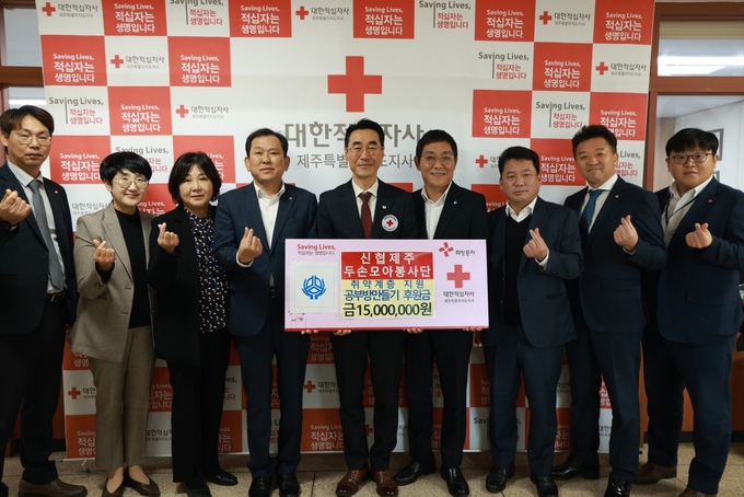 신협제주두손모아봉사단(단장 허두은), 신협중앙회 제주지역본부(본부장 김도원)는 11월 17일 대한적십자사제주특별자치도지사(회장 정태근)에 취약계층 지원을 위한 ‘Hope up 공부방 만들기’ 사업 후원금 1,500만원을 전달했다.