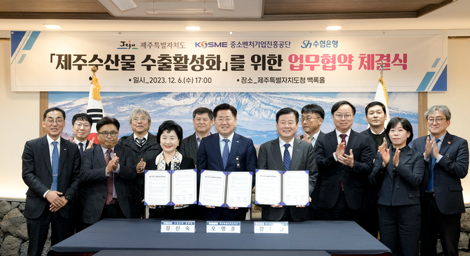 제주특별자치도와 중소벤처기업진흥공단, 수협은행이 제주수산물 수출 활성화를 위해 손을 맞잡았다.