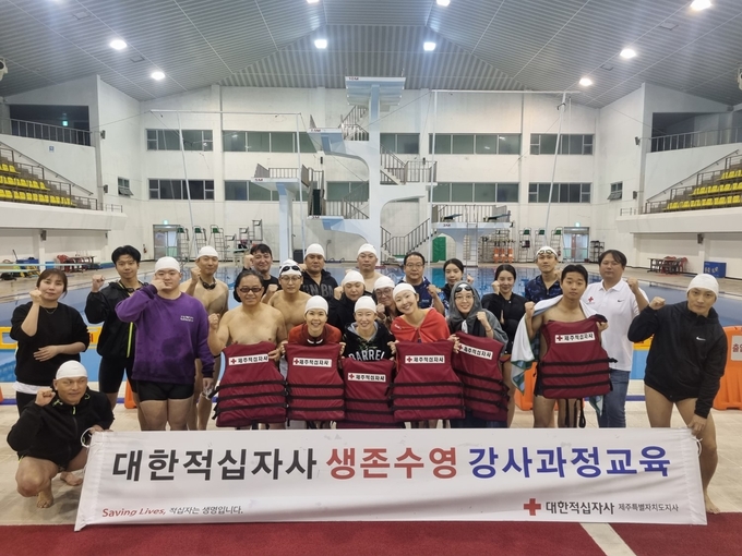 대한적십자사제주특별자치도지사(회장 정태근)는 지난 12월 28일 한라수영장에서 적십자 인명구조요원 자격소지자 21명이 참석한 가운데, 물놀이 안전을 위한 ‘생존수영강사과정’ 교육을 실시했다.