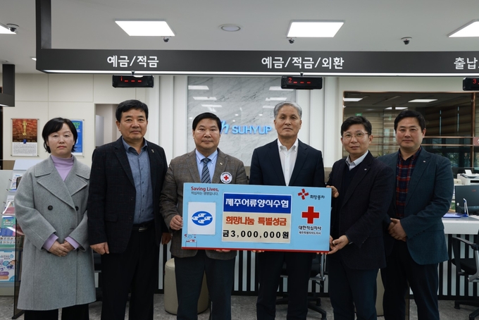 제주어류양식수산업협동조합(조합장 한용선)은 1월 8일 제주어류양식수협 본소에서 대한적십자사제주특별자치도지사(회장 정태근)에 지역사회 소외된 이웃을 위한 희망나눔 특별성금 300만원을 전달했다.