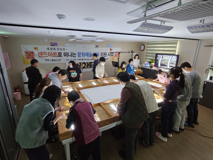2024년 1월10일(수) 제주중앙라이온스클럽과 제주올레라이온스클럽 합동봉사단이 발달장애인들에게 샌드아트의 즐거움을 선물하기 위해 희망나래활동센터를 방문하였다.