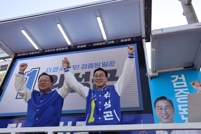 이날 유세에는 더불어민주당 상임공동선대위원장인 김부겸 전 국무총리도 성산을 찾아 지원 유세에 나섰으며 위성곤 후보와 상가방문을 함께했다.