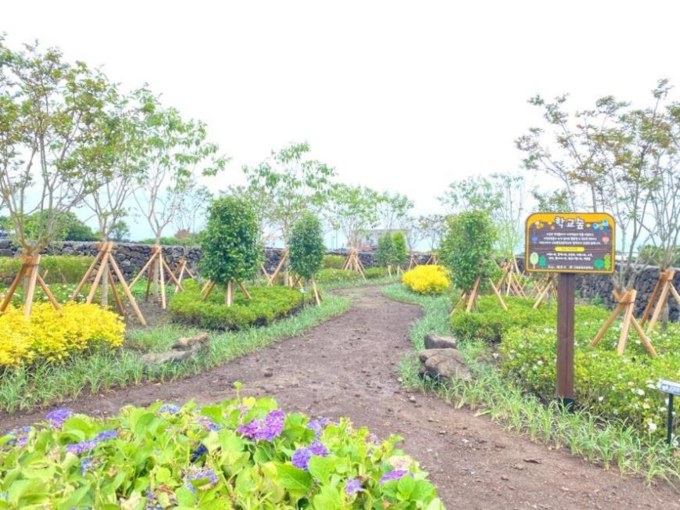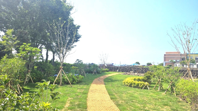 염해, 해풍에 강한 이팝나무, 동백나무, 황금사철나무, 수국 등 총 11종·6,819그루를 식재해 산책과 체험이 가능한 자연학습장으로 조성했다.