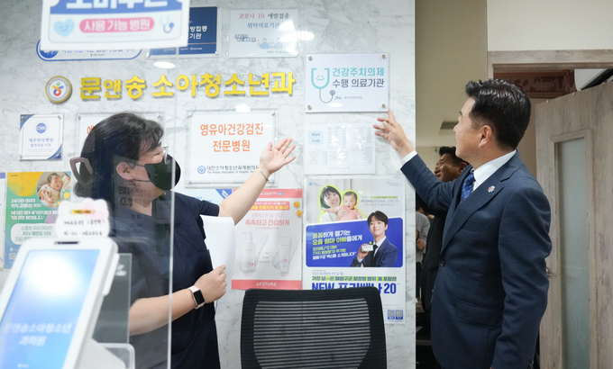 제주도는 2일 오후 제주시 삼도동 문앤송소아청소년과의원을 방문해 사업 시행 초기 현장의 목소리를 청취하고 의료진을 격려했다.