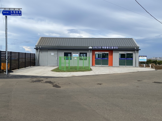 대정읍 신도2리 재활용도움센터는 연면적 74.88㎡의 규모로 올해 4월부터 사업비 3억여 원을 투입하여 지난 9월 완공하였으며, ▲가연성수거함(4) ▲재활용분리수거함(12) ▲RFID음식물계량장비(6) 등과 생활쓰레기 배출시설 및 관리사무실, 화장실 등의 편의시설도 함께 설치하였다.