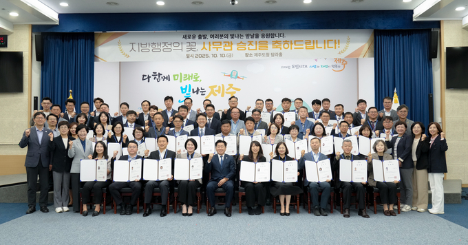 제주특별자치도는 10일 오전 도청 탐라홀에서 사무관 및 연구·지도관 승진자 50명에게 임용장을 수여했다.