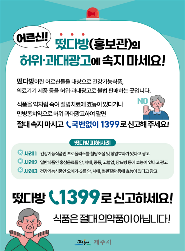 특히, 지난해 제주 지역에서도 어르신을 대상으로 건강기능식품을 의약품처럼 속인 사례가 발생하는 등 경각심이 커지고 있다.