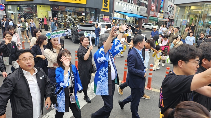 교류도시 대표단은 2.4㎞ 구간에 걸친 칠십리축제 길거리 퍼레이드에도 참여하였는데, 그 중 친황다오시 학생단은 읍면동 퍼레이드 행렬과 함께 행진하고 응원을 보내며 축제 분위기를 한층 북돋웠다.