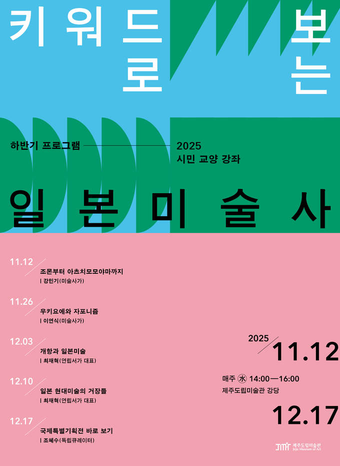 제주도립미술관은 11월 12일부터 12월 17일까지 수요일 오후 2~4시 미술관 강당에서 ‘2025 시민 교양 강좌’ 하반기 프로그램 <키워드로 보는 일본미술사>를 운영한다.