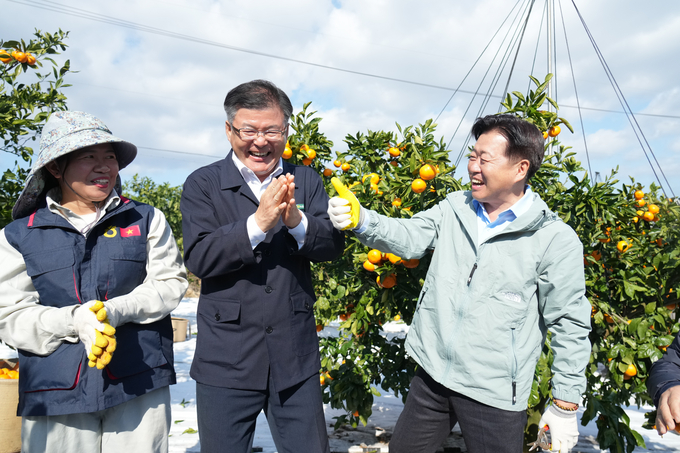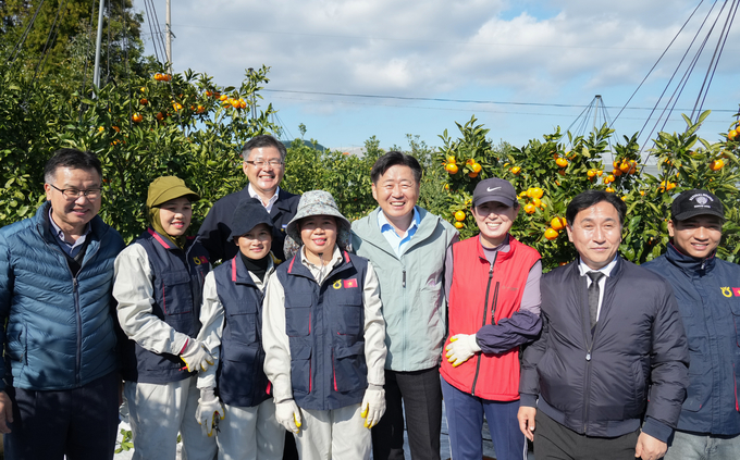 오영훈 지사, 노지 감귤 수확 현장 찾아 일손 돕기