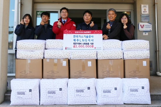 한국가스기술공사 제주LNG지사(지사장 한광희)는 지난 9일, 주사랑요양원에서 난방 취약계층 지원을 위한 2백만 원 상당의 혹한기 난방용품을 제주사회복지공동모금회(회장 강지언)에 기탁했다.