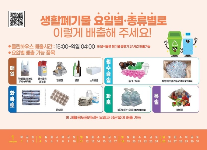 홍권성 생활환경과장은 “이번 달력 제작이 환경에 대한 시민의 관심을 높이며 올바른 분리배출이 한층 더 생활 속에 정착되는 계기가 되길 바란다”고 밝혔다.