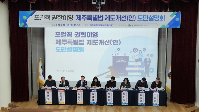 고민정 권한이양추진과장(TF)은 “포괄적 권한이양이라는 획기적인 입법방식을 통해 제주만의 특색을 살린 정책을 실현할 수 있는 계기를 마련하고자 한다”라며 “제도의 변화는 지역사회의 공감과 지지가 뒷받침될 때 비로소 실현될 수 있는 만큼 도민들의 적극적인 관심을 당부드린다”고 전했다.