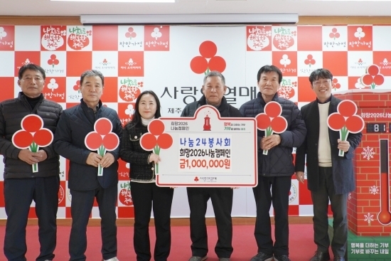 나눔24봉사회(회장 김종래)는 최근 제주사회복지공동모금회(회장 강지언)에 연말연시를 맞아 이웃사랑 성금 1백만 원을 기탁했다.