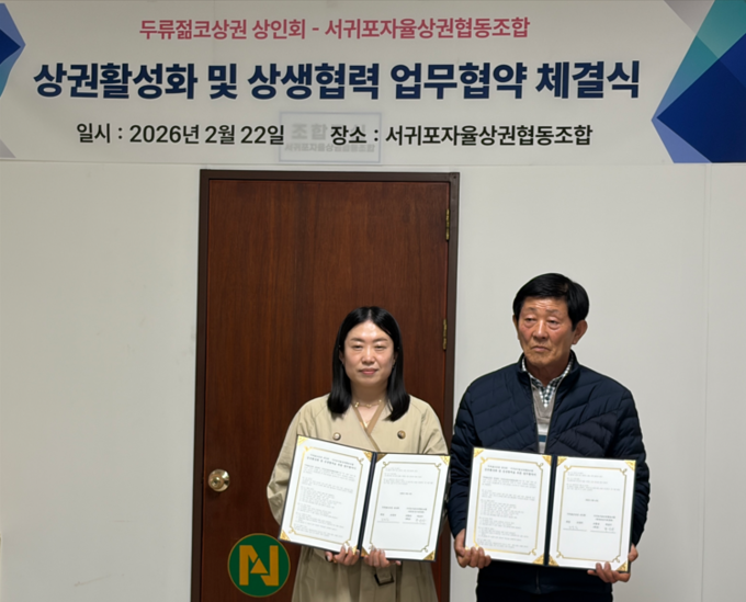 서귀포자율상권협동조합 사무실에서 진행된 체결식은 대구 달서구청, 두류젊코상인회, 대구 전통시장진흥재단 등이 참석한 가운데 진행되었다.