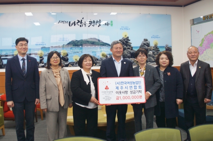 이번 성금은 (사)한국여성농업인제주시연합회 회원들이 십시일반 성금을 모은 것으로, 제주시 관내 어려운 이웃에게 전달될 예정이다.