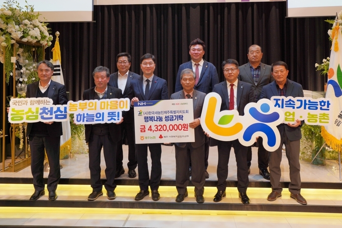 (사)한국새농민 제주특별자치도회(회장 김종우)는 지난 달 27일 노팅힐웨딩컨벤션에서 이웃사랑 성금 432만원을 제주사회복지공동모금회(회장 강지언)에 기탁했다.