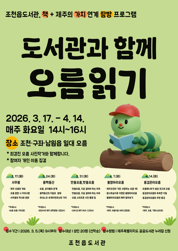 조천읍도서관은 제주의 가치가 담긴 독서문화 탐방 프로그램 ‘도서관과 함께 오름 읽기’를 운영한다.