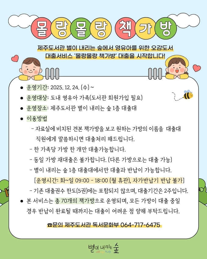 제주도서관에 따르면 지난해 12월 서비스를 시작한 이후 지난달까지 약 3개월간 총 245회 대출이 이루어졌으며 1470여 권의 도서가 이용되는 등 영유아 가정을 중심으로 활발한 대출이 이어지고 있다.