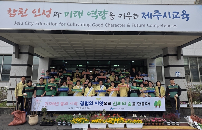 제주시교육지원청(교육장 고성범)은 지난 1일 제81회 식목일을 맞아 청사 일원에서 전 직원이 참여한 가운데 식목행사와 청렴 실천 캠페인을 함께 실시했다.